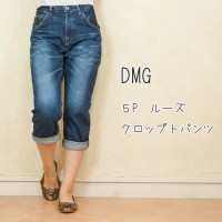 短めクロップト丈のルーズシルエットデニムパンツ 股上もやや深…