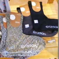 足の形状に合わせた L字形靴下。…