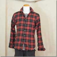 チェックシャツレッド系 襟ワイヤー入り