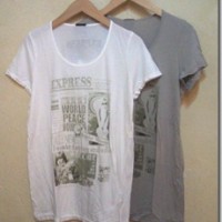 ニュースペーパー半袖ロゴT (ホワイト・グレー)